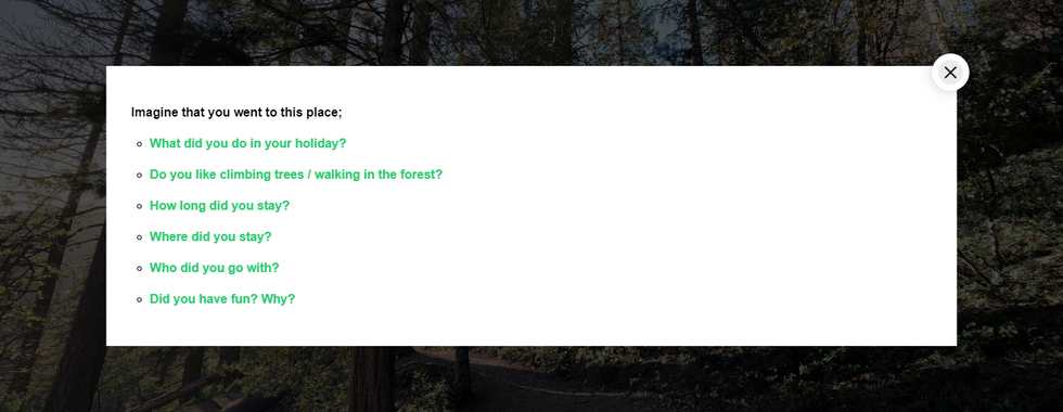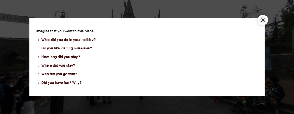 I chose to create a photo album page that opens 360° images as if students look at their memories through the photos they took while traveling. Every image contains a video -students can either imagine as if they are the one who took that video or decided to go there after watching it- and personalized questions.