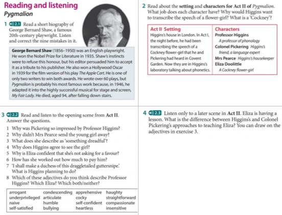 Literary Text: George Bernard Shaw’s play named Pygmalion (Act II Scene 1 and Act III)